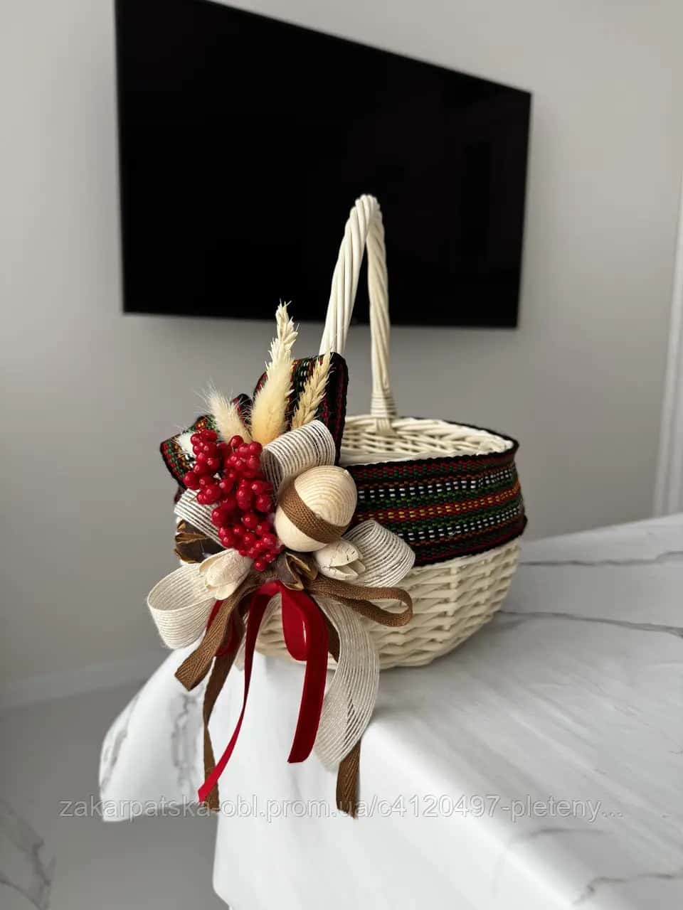 Унікальний дизайн: Кожен кошик є унікальним, адже керамічні підвіски розписуються вручну, а візерунки на тканому поясі можуть незначно відрізнятися. Ви станете власником ексклюзивного виробу, який не має аналогів.