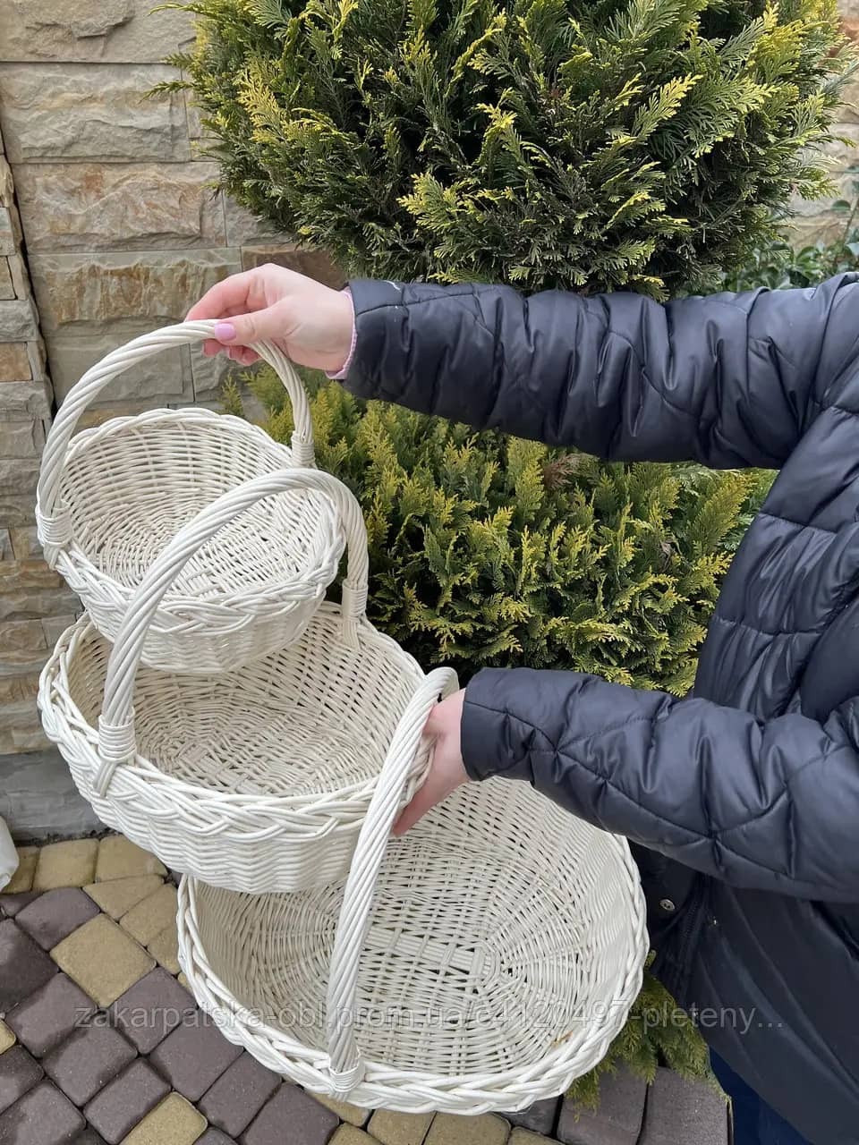 Корзини виготовлені із цілої натуральної білої лози. В набір входять три корзини різного розміру одної форми. Натуральний білий колір, овальна форма, якісне плетіння.